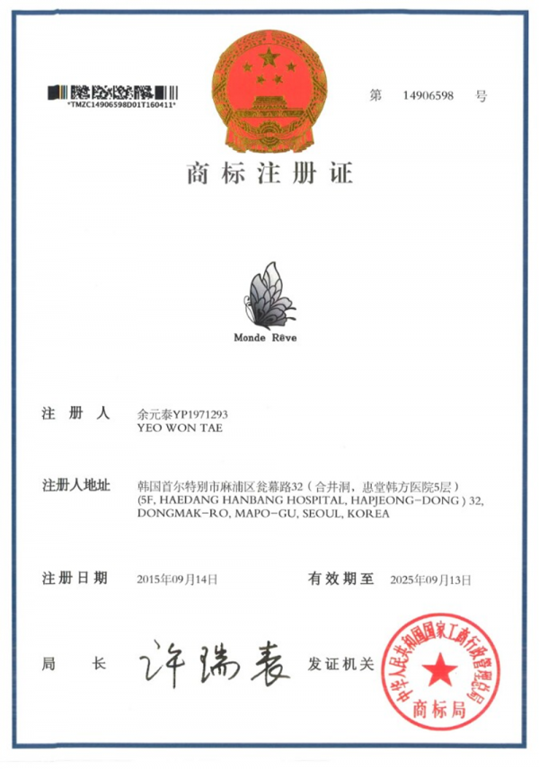 몬드레브 중화민국 상표 등록증